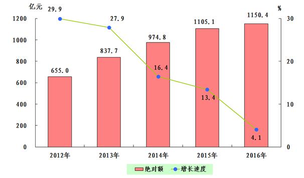 圖7:2012-2016年外貿(mào)進出口總額及增長速度