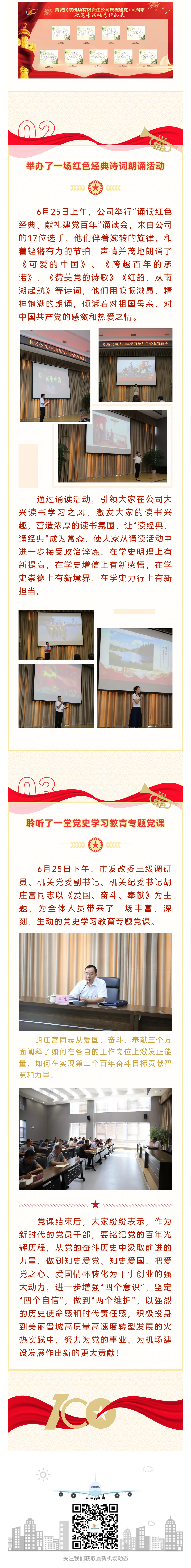 機(jī)場(chǎng)公司開展系列活動(dòng)慶祝中國共產(chǎn)黨成立100周年
