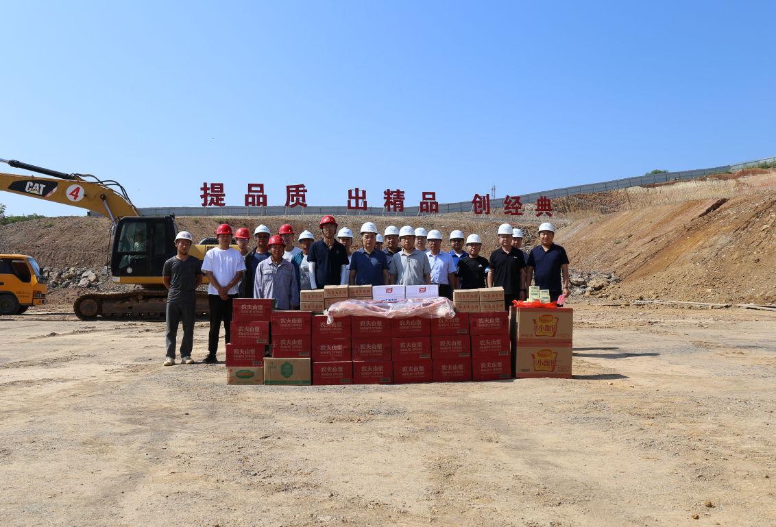 炎炎夏日,機場項目高填方工程試驗(研究)段施工現(xiàn)場塔吊林立、機械轟鳴,一片繁忙景象。大批工人冒著酷暑,在工地揮汗如雨。為將公司的關懷和慰問及時傳遞給一線工人,6月16日上午,機場公司董事長樊海放、總經(jīng)理郝少勤一行,赴高填方工程試驗(研究)段施工現(xiàn)場,向高溫天氣中一直堅守在一線的工人們送去礦泉水、藿香正氣水、綠豆、冰糖、水果等高溫慰問品,讓他們在酷暑中感受到了一絲舒心的涼意。