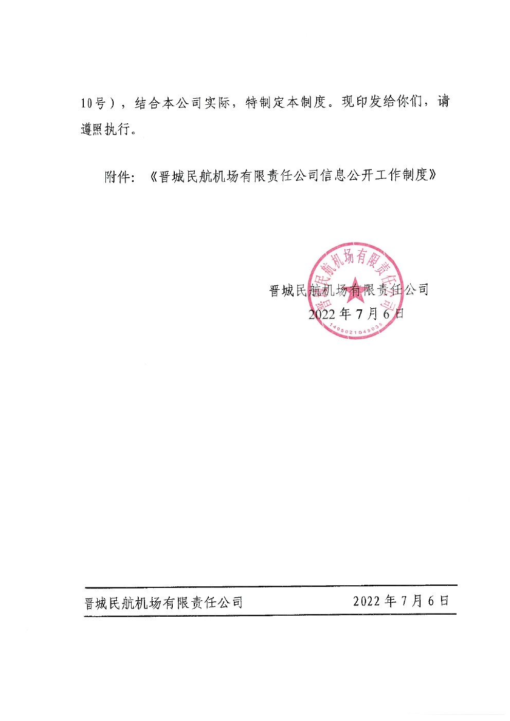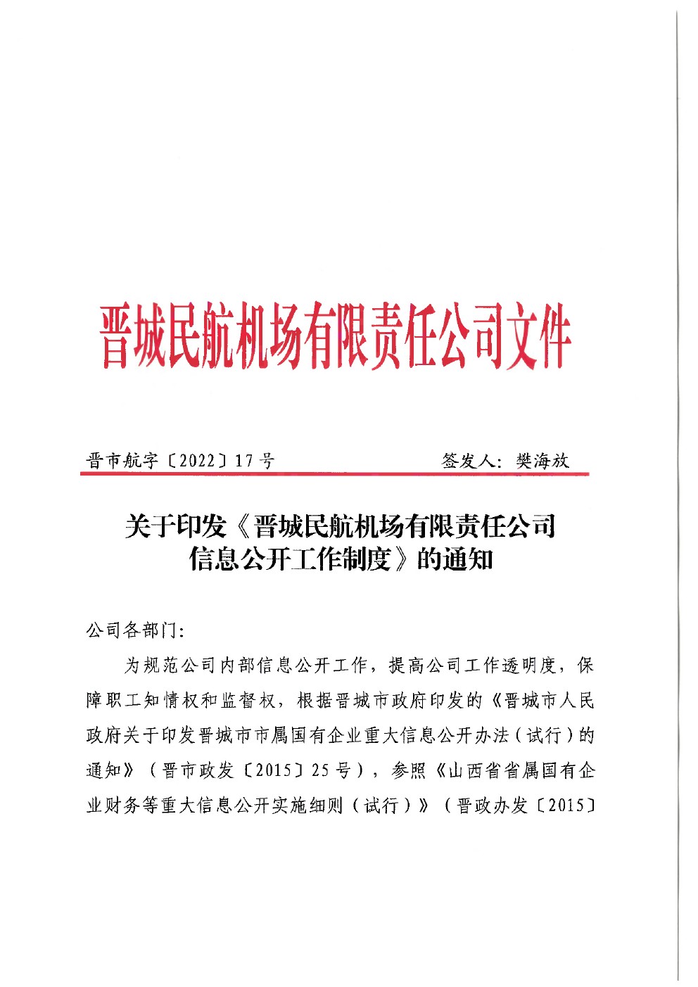 關(guān)于印發(fā)《晉城民航機(jī)場(chǎng)有限責(zé)任公司信息公開工作制度》的通知