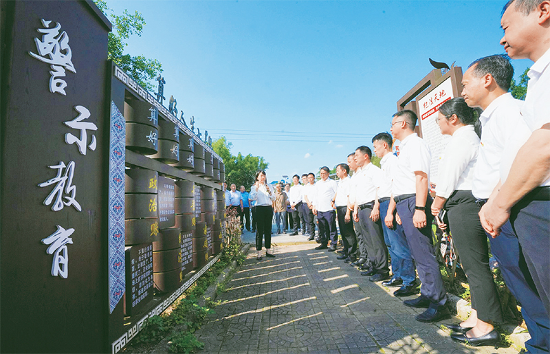 在全黨開展黨紀學習教育,是加強黨的紀律建設、推動全面從嚴治黨向縱深發(fā)展的重要舉措。當前,各地區(qū)各部門精心組織實施,不斷推動黨紀學習教育走深走實。圖為2024年5月23日,在廣西融水苗族自治縣一處廉政文化園,黨員干部接受廉政教育。 視覺中國 龍林智/攝