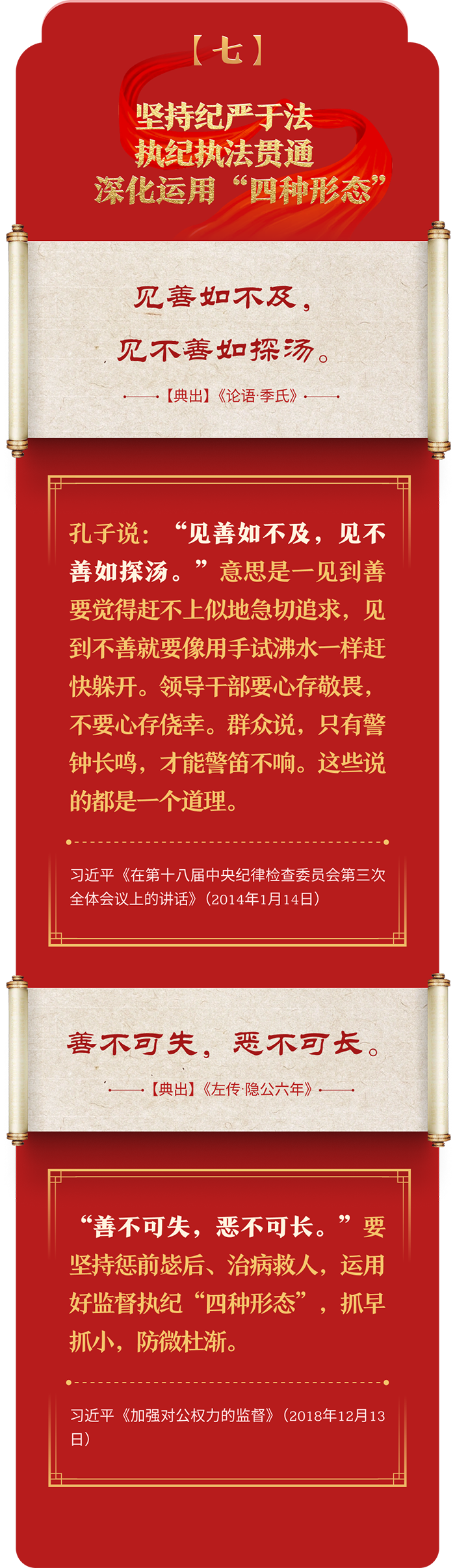 編者按:加強(qiáng)紀(jì)律建設(shè)是全面從嚴(yán)治黨的治本之策。黨的十八大以來,習(xí)近平總書記圍繞全面加強(qiáng)黨的紀(jì)律建設(shè)發(fā)表一系列重要論述,立意高遠(yuǎn),內(nèi)涵豐富,思想深刻,引導(dǎo)黨員干部學(xué)紀(jì)、知紀(jì)、明紀(jì)、守紀(jì),真正把紀(jì)律規(guī)矩轉(zhuǎn)化為政治自覺、思想自覺、行動自覺,確保全黨目標(biāo)一致、團(tuán)結(jié)一致、步調(diào)一致。在這些重要論述中,總書記精妙運(yùn)用古代典籍經(jīng)典名句,以古喻今、啟迪思想、激蕩精神,讓我們一起來學(xué)習(xí)!