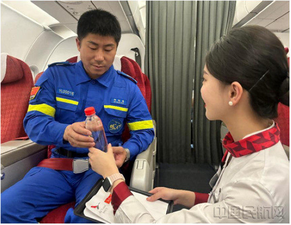 “在危難時刻你們無畏逆行,用專業(yè)與擔(dān)當(dāng)守護(hù)生命,用汗水與信念點亮希望”當(dāng)航班進(jìn)入平飛階段,乘務(wù)組通過機(jī)上廣播向藍(lán)天救援隊員們表達(dá)崇高敬意,廣播未畢,客艙內(nèi)就已響起熱烈掌聲,旅客們紛紛為這群“逆行英雄”點贊鼓掌。